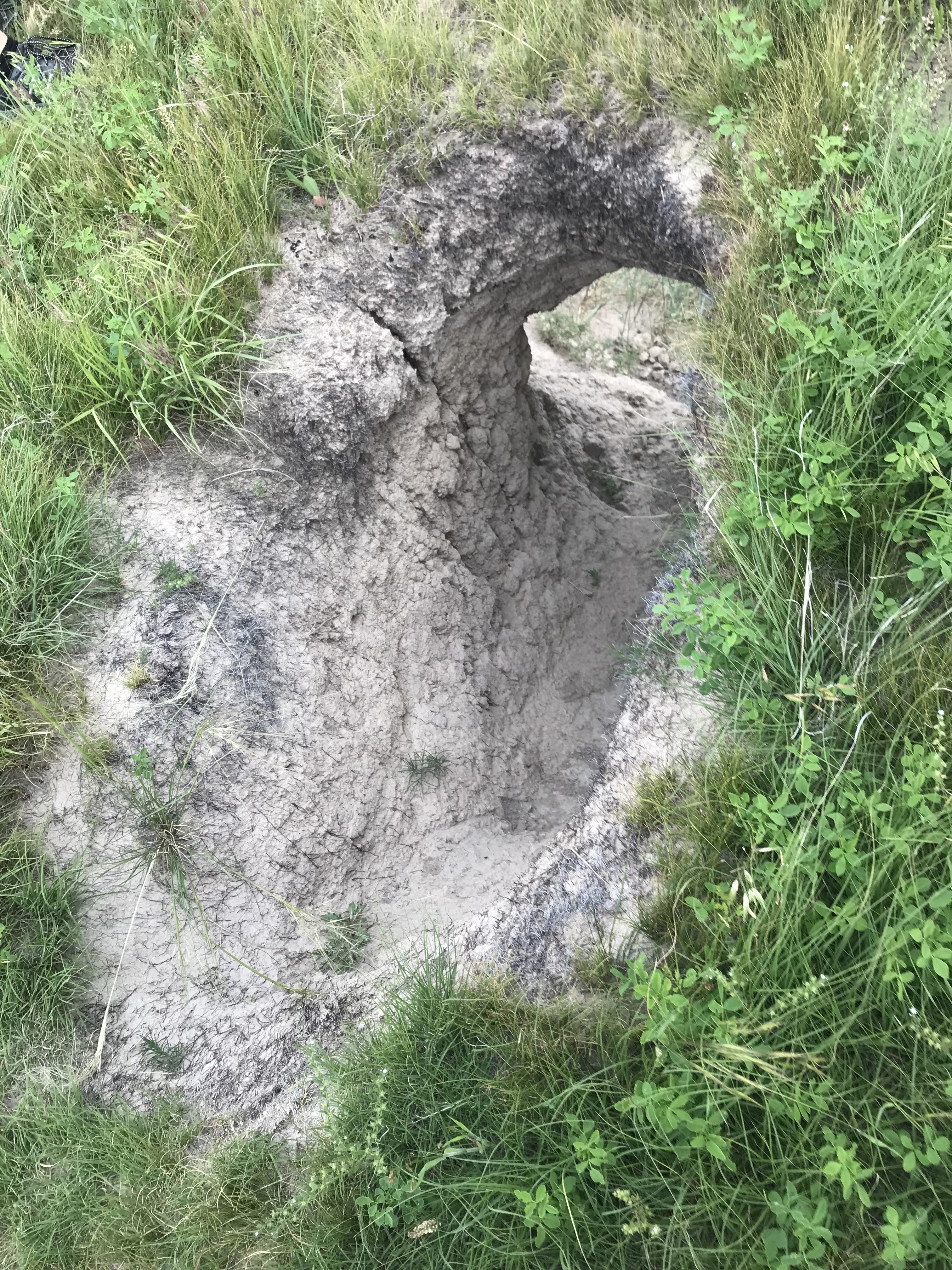 This afternoon, we ate dinner at 5, then went to Sheep’s Mountain with the leader group. It was fun to explore more than we did back in March. It rained last night, so there was some mud on the ground, but nothing like back in March. Sheep’s Mountain was a blast. We went up to the top and the grass was grown up pretty tall. I learned about these weeds that they call spears. If you throw at someone, they stick them like tiny spears. People were worried about snakes and then they actually saw a rattler, so that was interesting. I learned a lot of cool places to check out while we were there. I got to see this cool hole.
